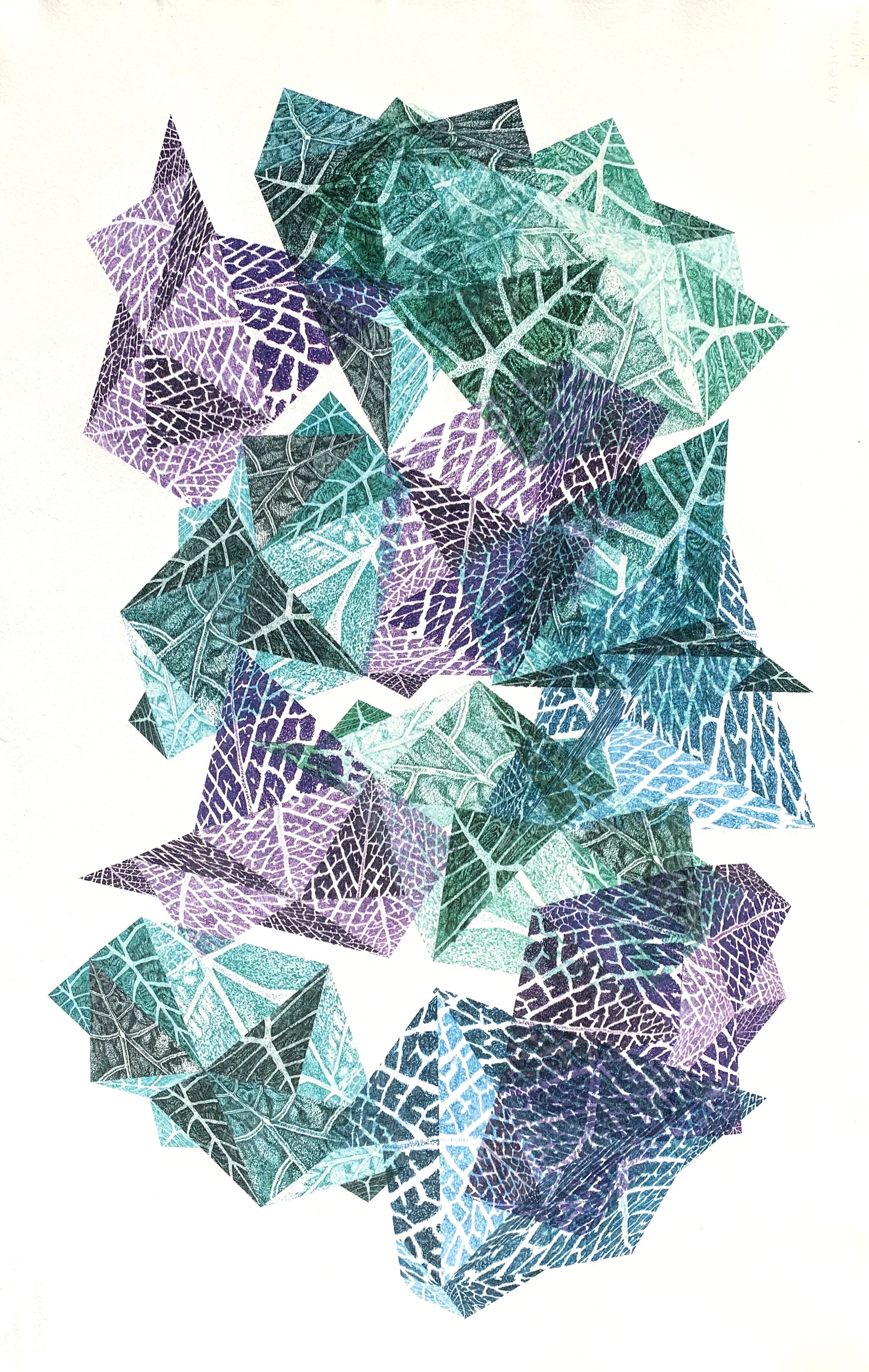 I’ve always had an affinity with nature; having farmers and gardeners on both sides of my family and growing up in a house filled with plants, I find comfort in their presence. Faced with the isolation and uncertainty of the pandemic, I began to use the visual language of plants in my work. In some cases I placed them in methodically arranged compositions to express my desire for order, and in other pieces the compositions grew haphazardly, expressing the disorder of both my state of mind and the state of events in the world.